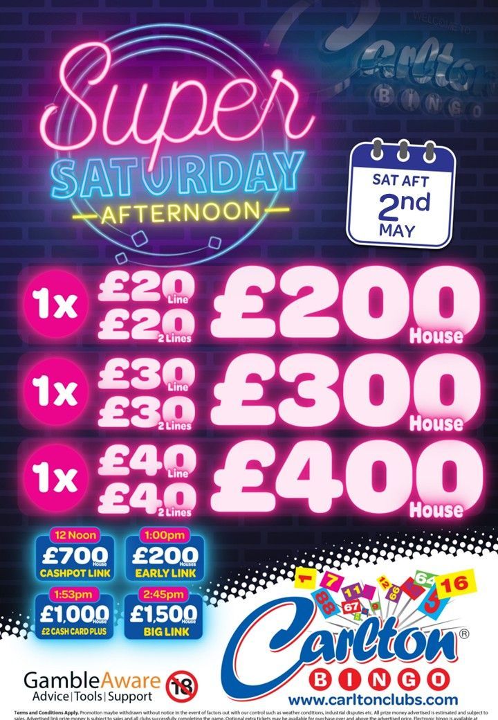 | Saturday | 1pm | 2pm | £16.50 | From £21 |